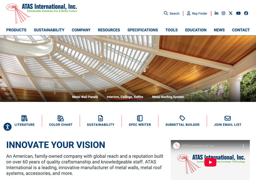 ATAS International is a recognized leader in the manufacturing of innovative metal walls, roof systems, accessories, and more. ATAS and KSA&D started their partnership back in 2019, when at the time ATAS was looking to update their website. They were at the time using Kentico and did not want to continue to pay licensing fees.